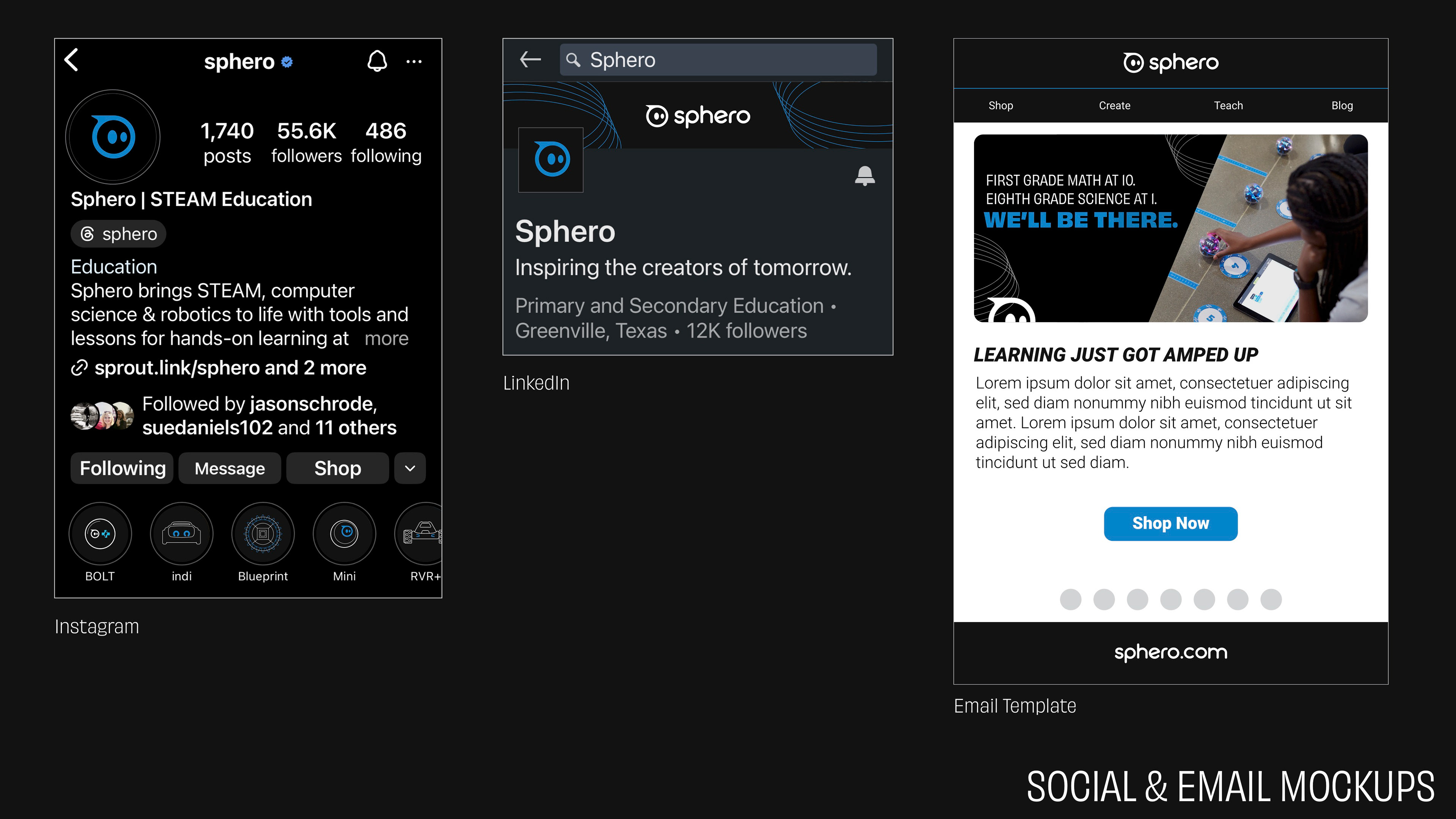 Sphero is an educational robot company that makes robots and educational products for the classroom. I led a visual rebrand for the company, including a new Design and Copy direction.