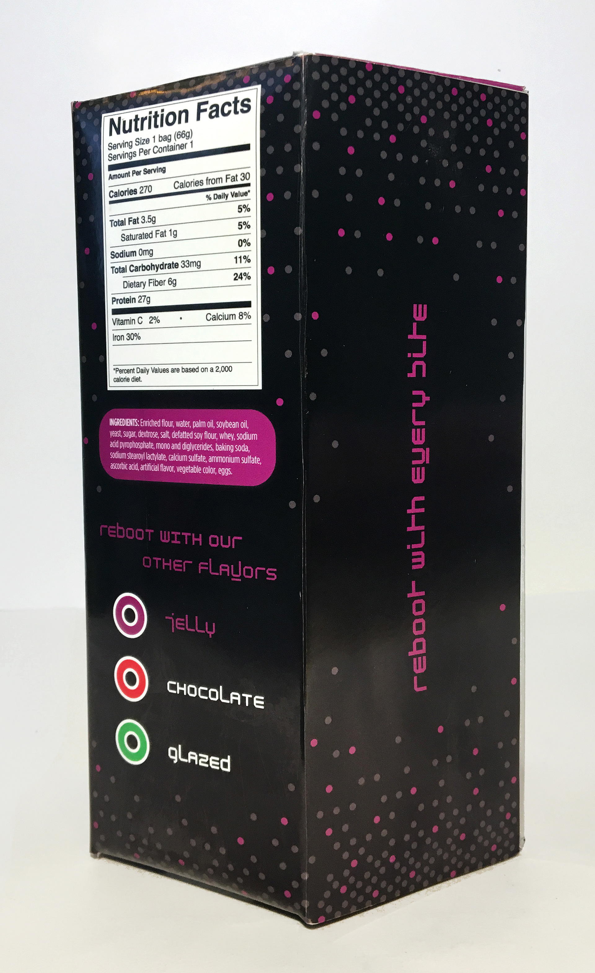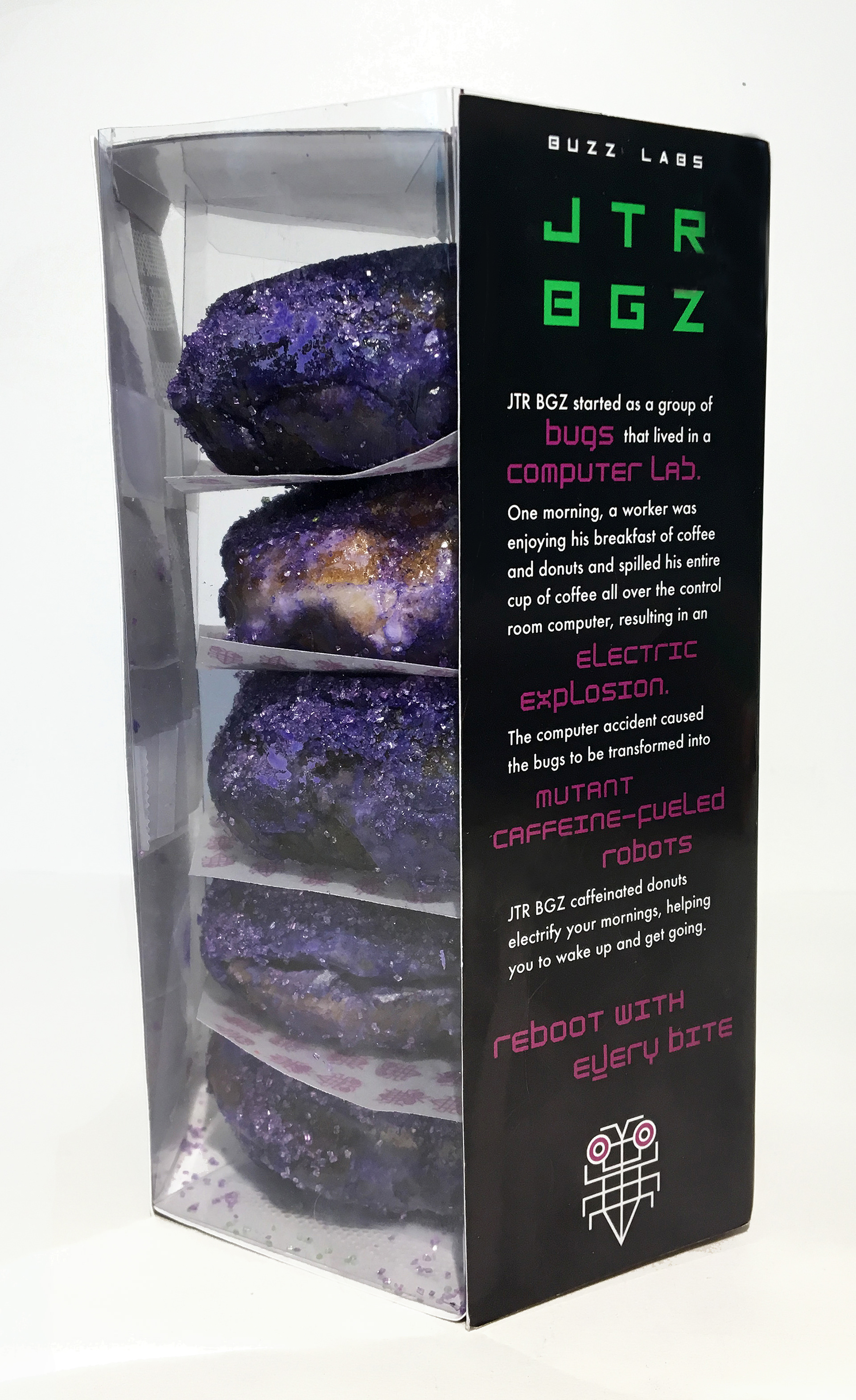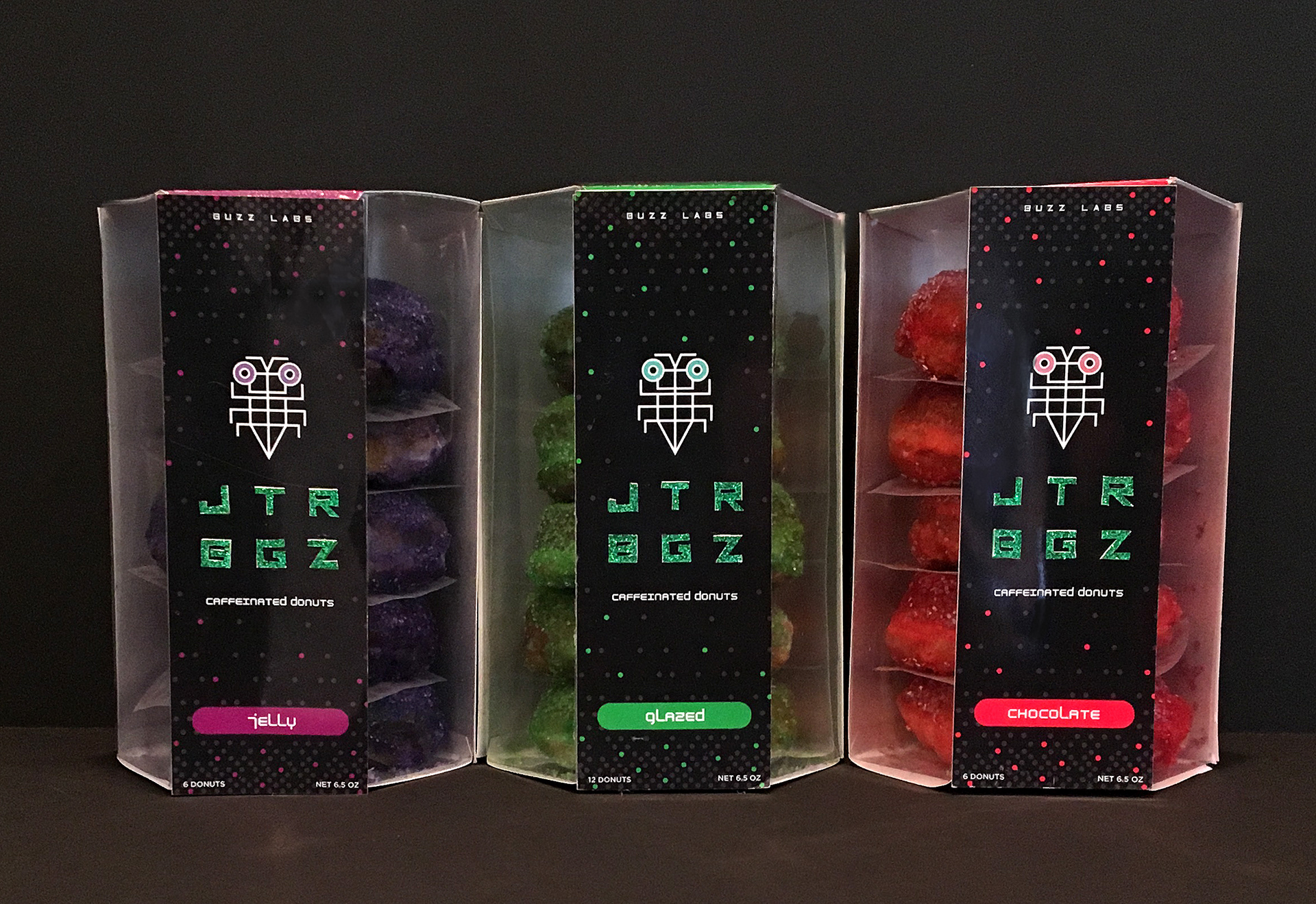 Packaging for caffeinated donuts